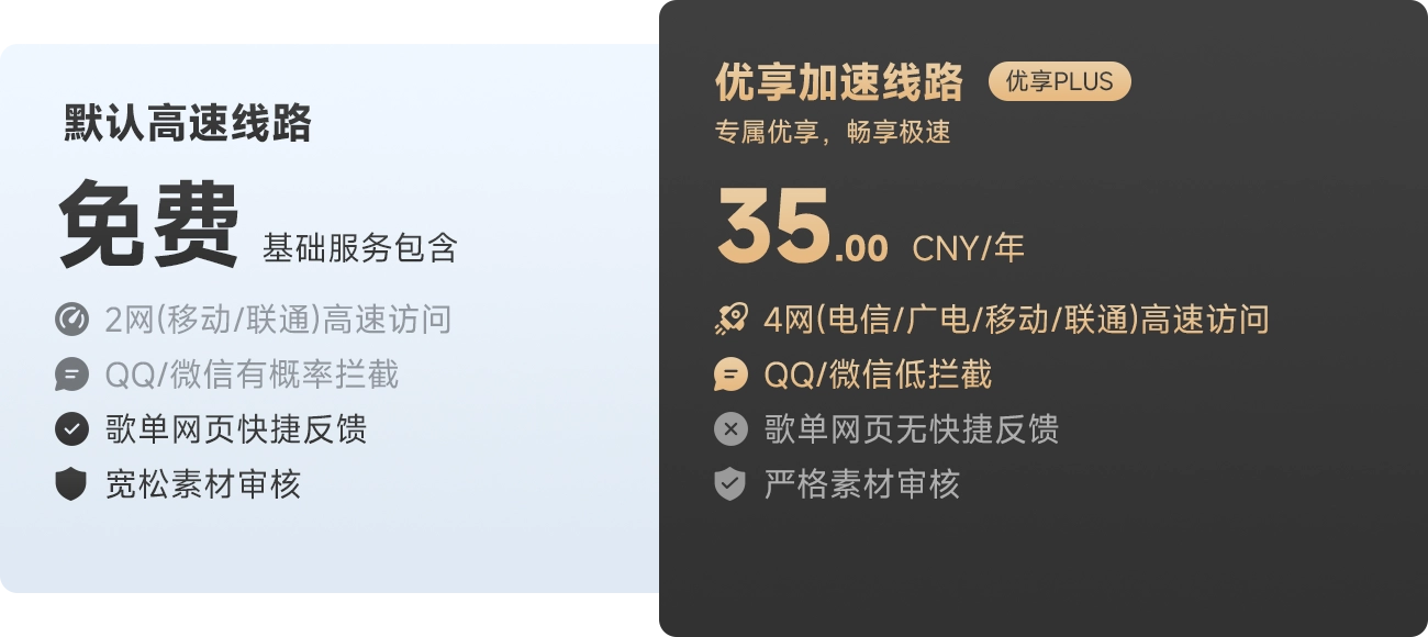 如果您有更高的访问速度需求或低社交软件拦截需求可以使用我们的优享加速线路